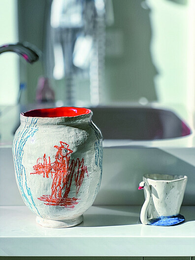 У нас дома есть и живопись, и керамика, и антиквариат. В детских комнатах я концентрировалась на принтах: «Грушу» Энцо Мари, которая висит в его игровой с рождения, Марк точно будет помнить всю жизнь. Я купила постер с «Грушей» Энцо Мари в Лондоне и обрамила в пластиковое стекло — чтобы сын мог его трогать и задевать, свободно взаимодействуя с ним.