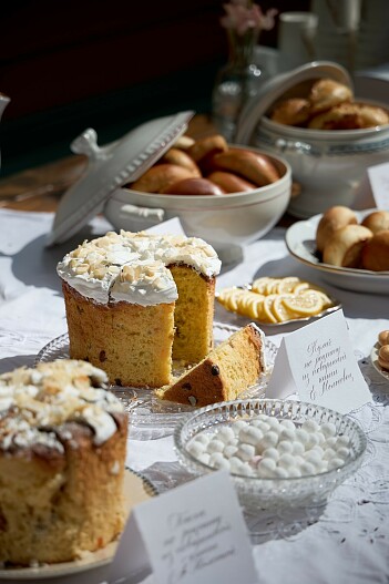 Авторские цветочные композиции от PROZAMI, обрамляющие панеттоне, созданы из первоцветов и полевых цветов: нарциссов, тюльпанов, генисты. Флористы, известные сотрудничеством с топовыми агентствами декора, использовали нежныен сочетания, вызывающие ощущение радости и обновления. Эти композиции остаются самостоятельным украшением интерьера и после праздника.